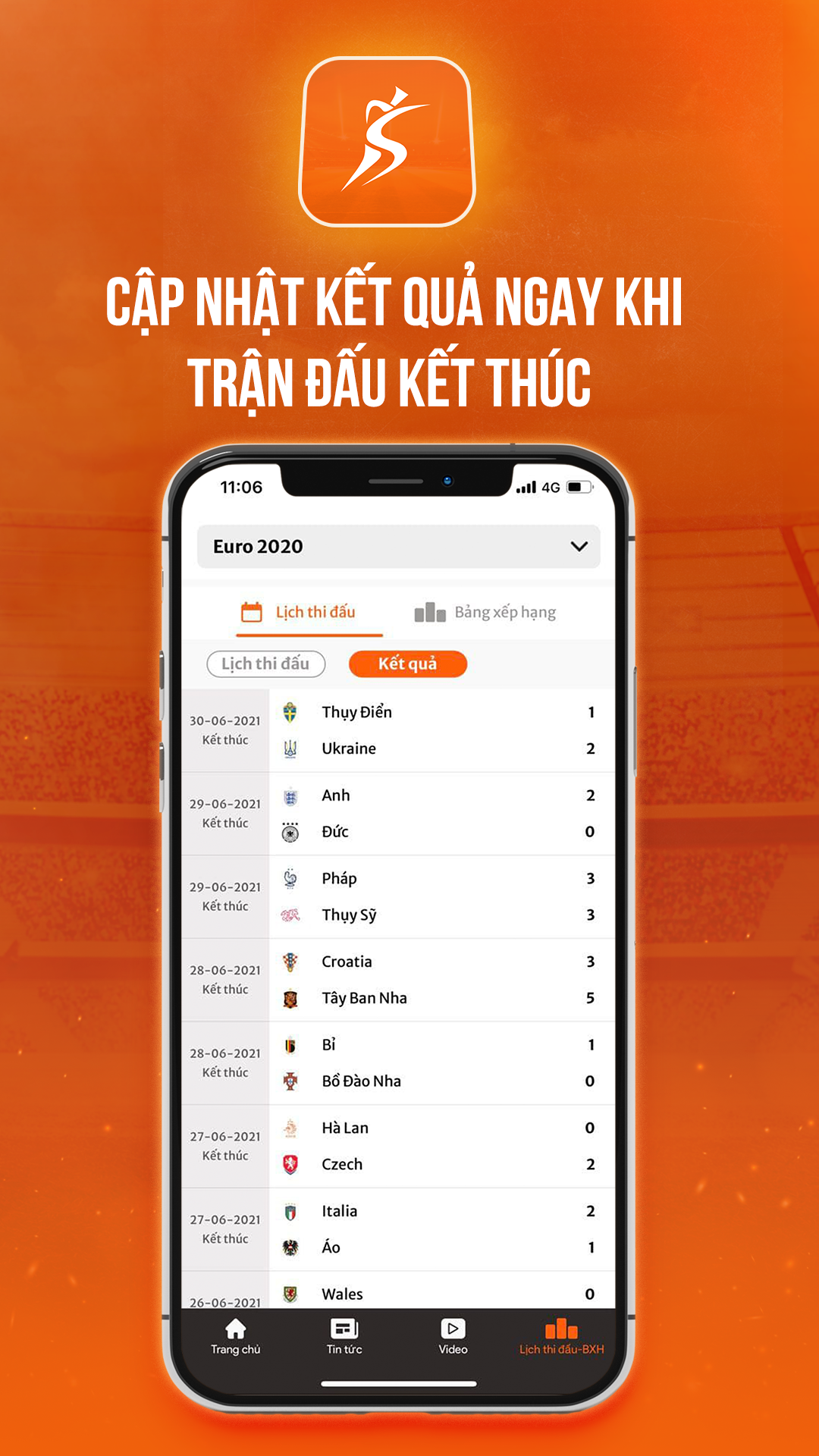 - Cập nhật thông báo kết quả ngay khi trận đấu kết thúc của các giải đấu lớn mà bạn yêu thích.